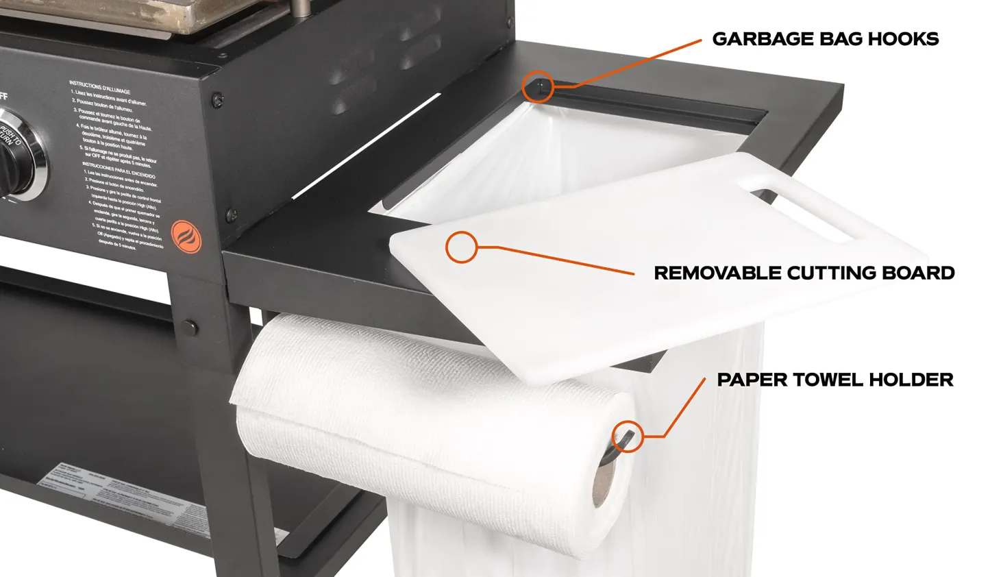 Blackstone 36" Cooking Station 4 Burner Propane Fuelled Restaurant Grade Professional 36 Inch Outdoor Flat Top Gas Griddle with Built in Cutting Board, Garbage Holder and Side Shelf (1825), Black