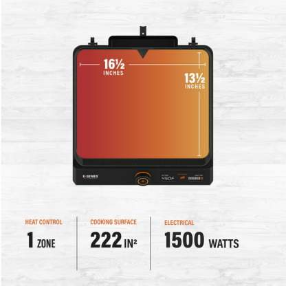Introducing the Blackstone E-series 17" Electric Tabletop Griddle with Hood. This 17" E-Series Griddle is a brand new style from Blackstone and is perfect for any occasion, whether it be indoor or outdoor. The 238-sq-in griddle plate is machine cast with a durable and elegant ceramic-titanium coating. It has a clean-catch, low profile, rear grease management system. The entire grease cup is dishwasher safe making cleanup simple. You can rotate and remove the E-Series hood for ease of use. Control the temperature with the EZ-Touch control dial and the large LCD Display. If you are new to Blackstone cooking or in the market for an indoor griddle with outdoor performance, this is the griddle for you.